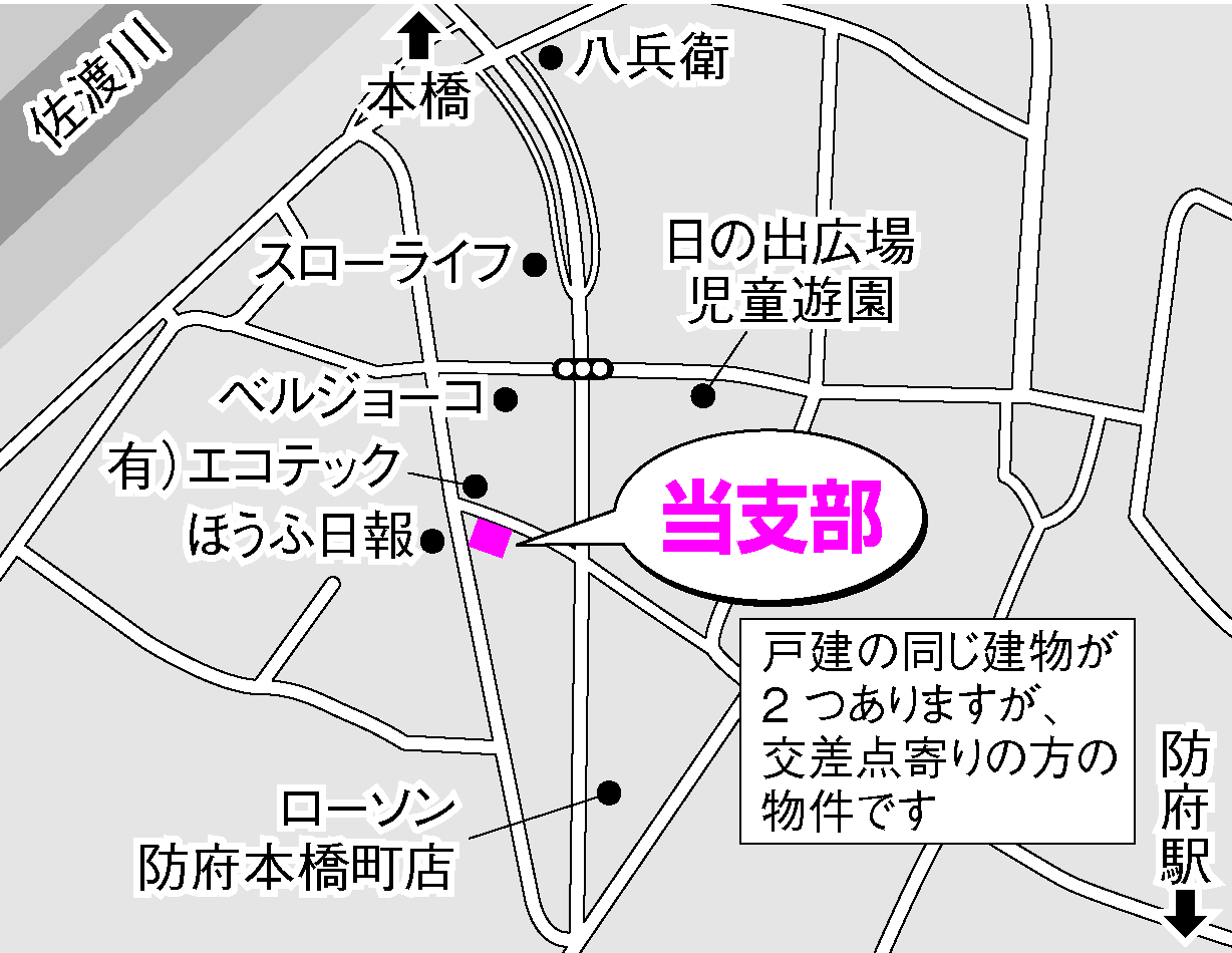 (仮称)山口県防府支部(山口県防府市) 紹介 アクセス 郵便番号 747-0041 住所 山口県防府市本橋町9-12 電話番号 0835-28-0771 交通手段 ●JR防府駅から徒歩27分 ●防府東ICより車で2分 アクセスマップ詳細